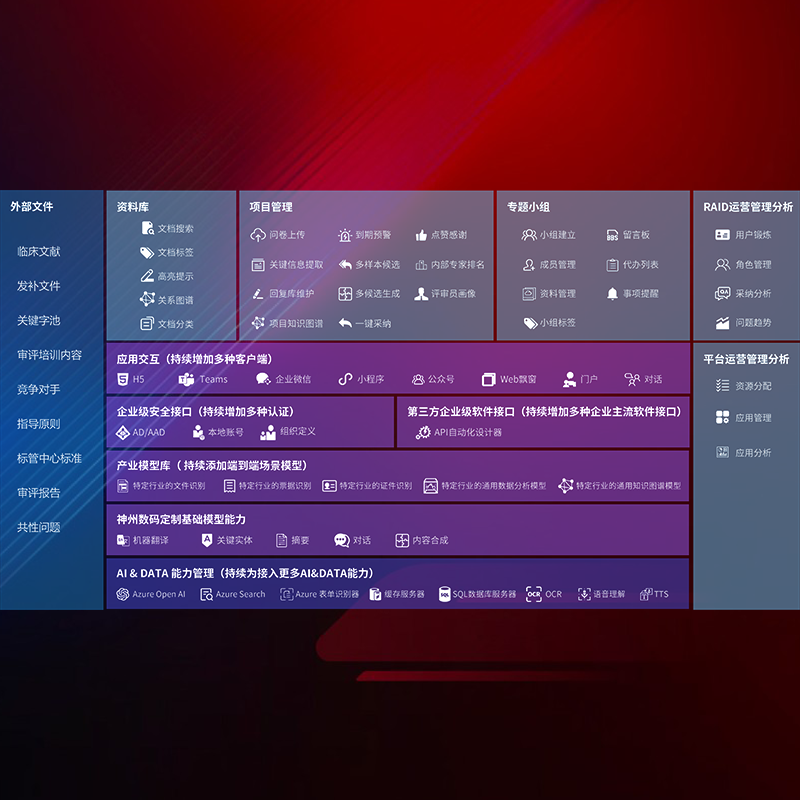 医疗器械产品上市前,要熟悉严格与繁复评审标准,整理分析监管机构指导文件中的海量信息。企业急需一个智能化解决方案,提升知识管理效率,提高评审通过率,以提升其市场竞争力。